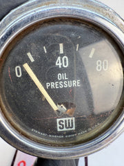 Vintage Stewart Warner 80 lbs Oil Pressure Gauge Large Logo Brass Case